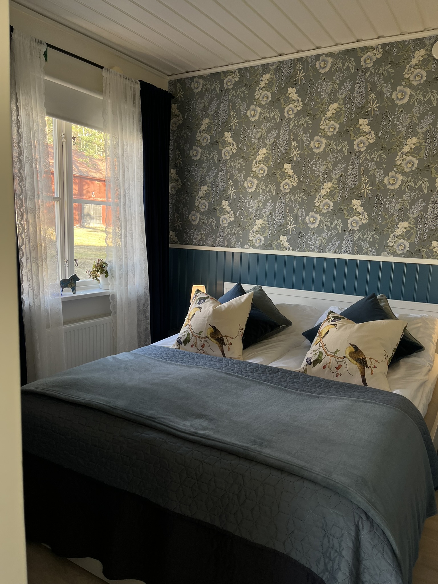 Sviten är färgsatt i royal blå och lejongult och är inredd i mycket romantisk stil.